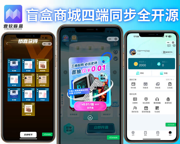 盲盒源码,壹软盲盒V2四端APP,仿真箱/猜客魔盒/叮当魔盒,砍价盲盒,免费抽盒APP源码搭建二开