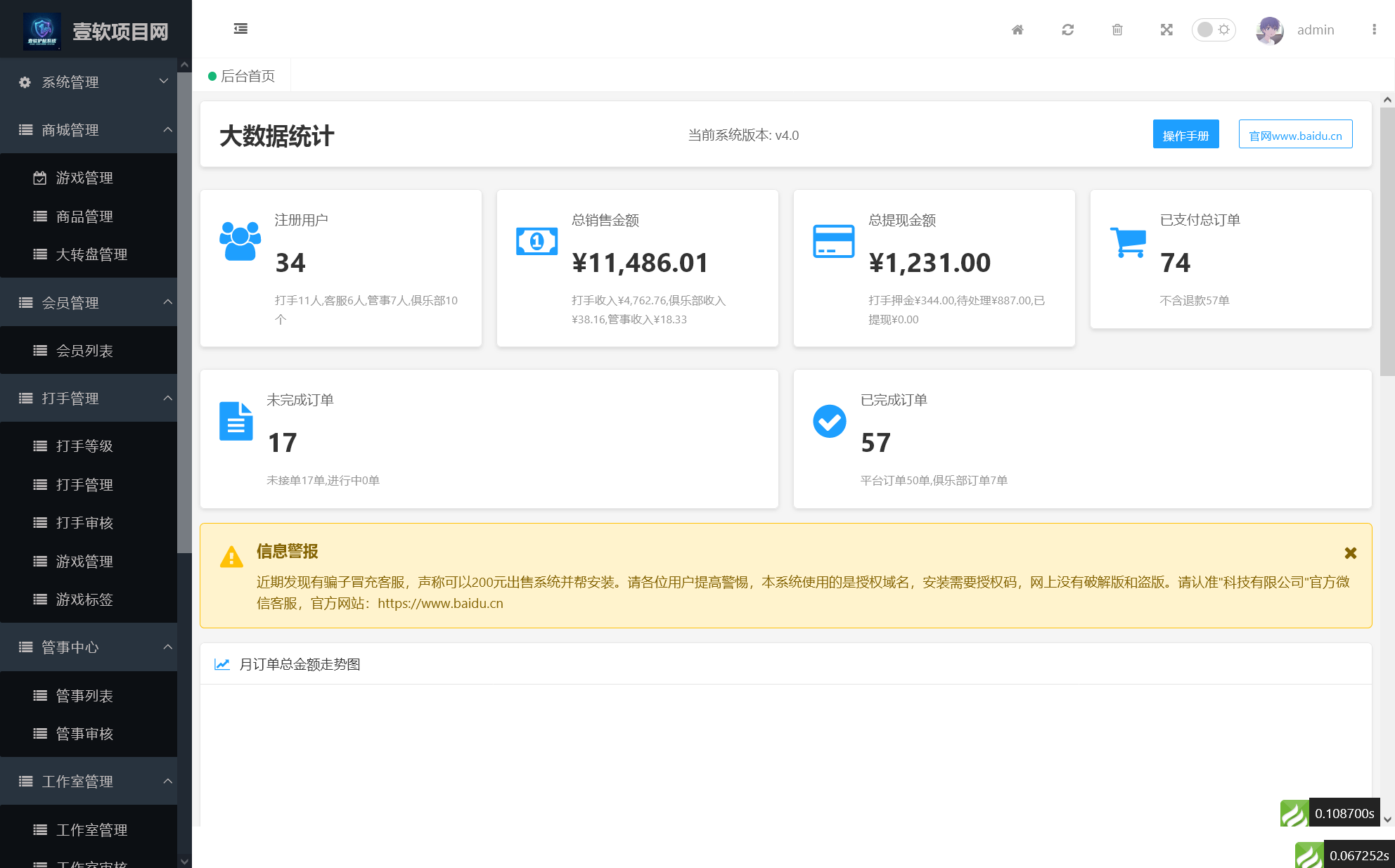在电竞产业蓬勃发展的今天,一个稳定、高效、可扩展的游戏陪玩护航平台是商业成功的基石。壹软护航游戏代练系统作为行业领先的全开源商业级解决方案,凭借其卓越的技术架构和完整的业务闭环,正为无数创业者和企业提供强有力的技术支撑。