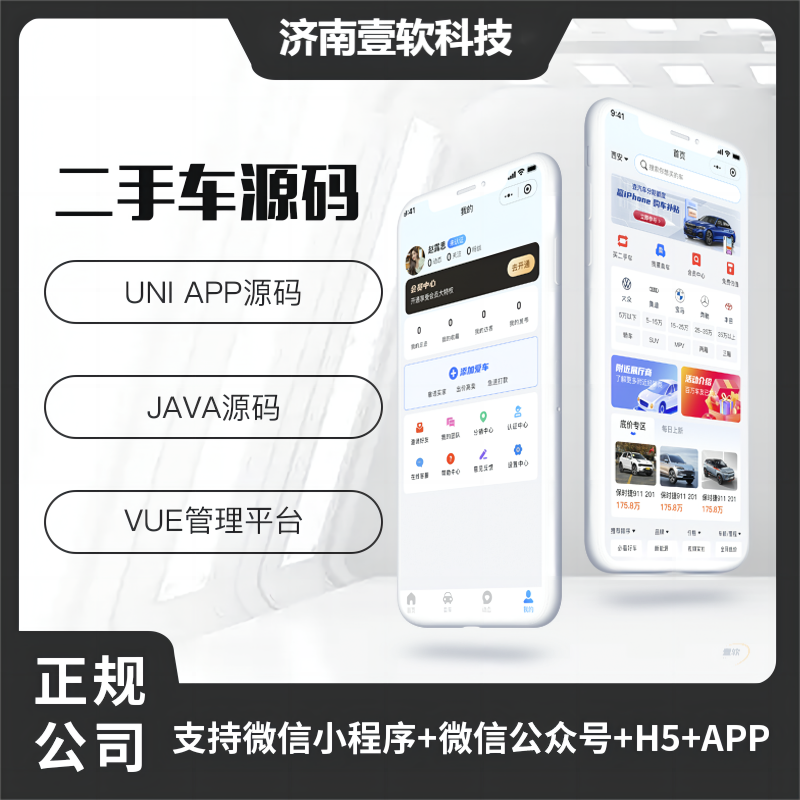 壹软JAVA二手车交易二手车市场系统源码支持微信小程序+微信公众号+H5+APP